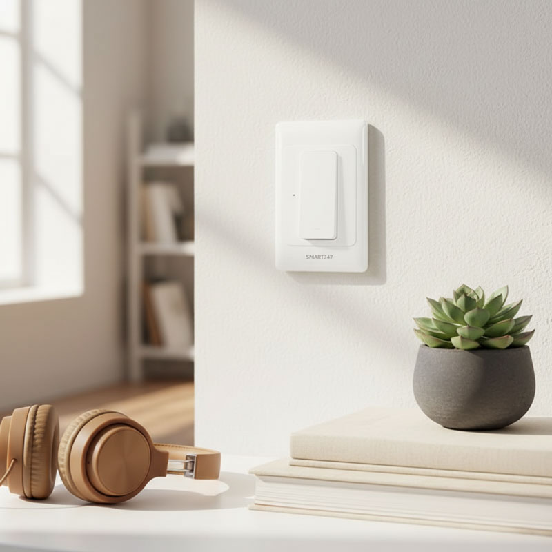 “스위치 하나 바꿨을 뿐인데, 일상의 온도가 달라집니다. 큰 공사 부담 없이 기존 배선 그대로 설치하는 스마트스위치로 당신만의 스마트홈을 시작하세요. 스마트폰 하나로 자유로워지는 조명 제어, smart247이 선사하는 더 여유로운 홈IoT 라이프를 경험해 보세요.”